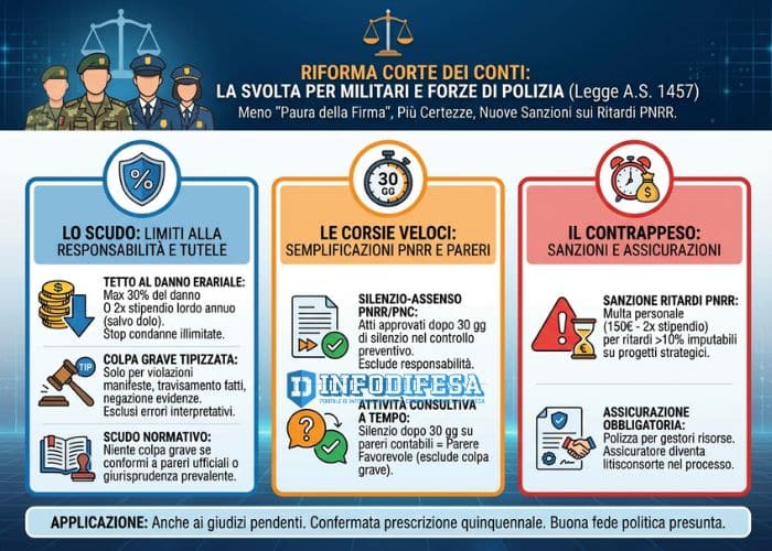 Riforma Corte dei conti: per militari e forze di polizia cosa cambia su responsabilità, ritardi e “paura della firma”?
