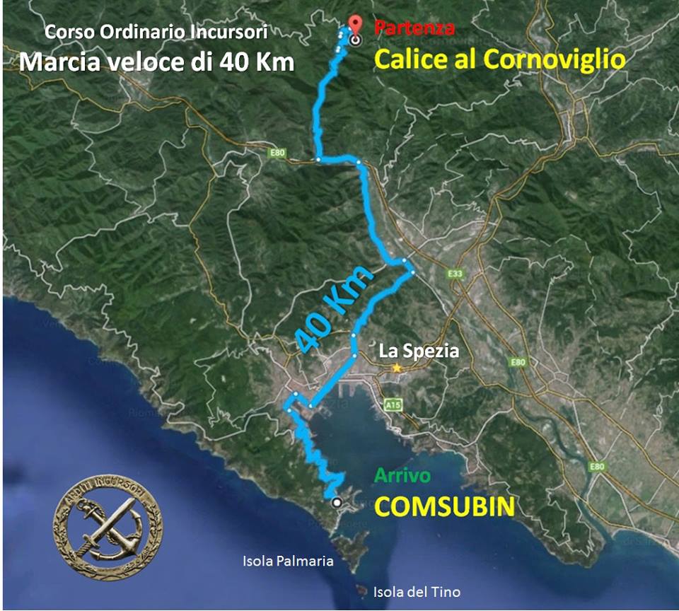 Test dei 40 km: termina la fase terra del corso Ordinario Incursori. I frequentatori hanno marciato con trenta chili di piombo nello zaino, arma imbracciata e anfibi ai piedi. “Complimenti ragazzi, da domani inizierà la fase acqua ora bisognerà imparare a combattere sott’acqua!”
